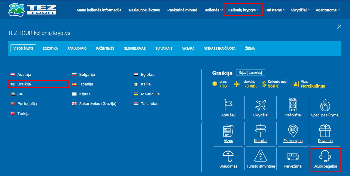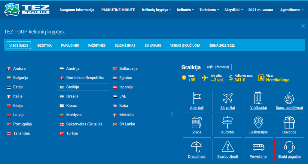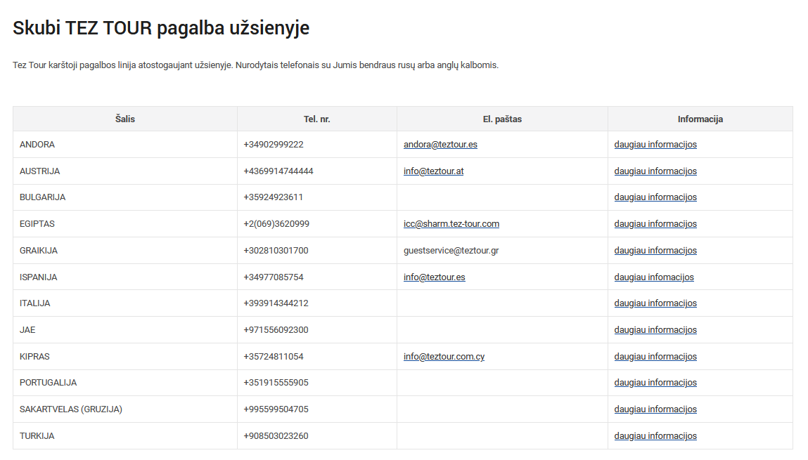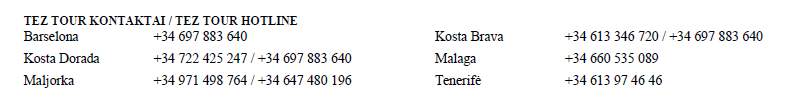 Taip pat, visuomet galima kreiptis "Tez Tour hotline" telefonais, kurie yra pateikiami kelionės dokumentuose (vaučeryje).