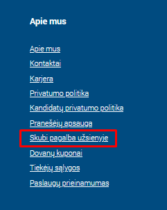 Be to kontaktai yra pateikiami ir mūsų interneto svetainėje, pagrindinio puslapio apačioje skiltyje Apie mus:
